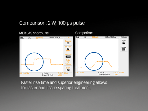 Der Merilas 532nm und die 577nm Photokoagulatoren verfügen über die Short-pulse Technologie von Meridian, mit der Gewebe zwischen Laserpulsen kühlen kann. Dies minimiert oder verhindert Gewebeschäden und Narben, reduziert Behandlungsrisiken und verbessert den Komfort und die Sicherheit der Patienten.