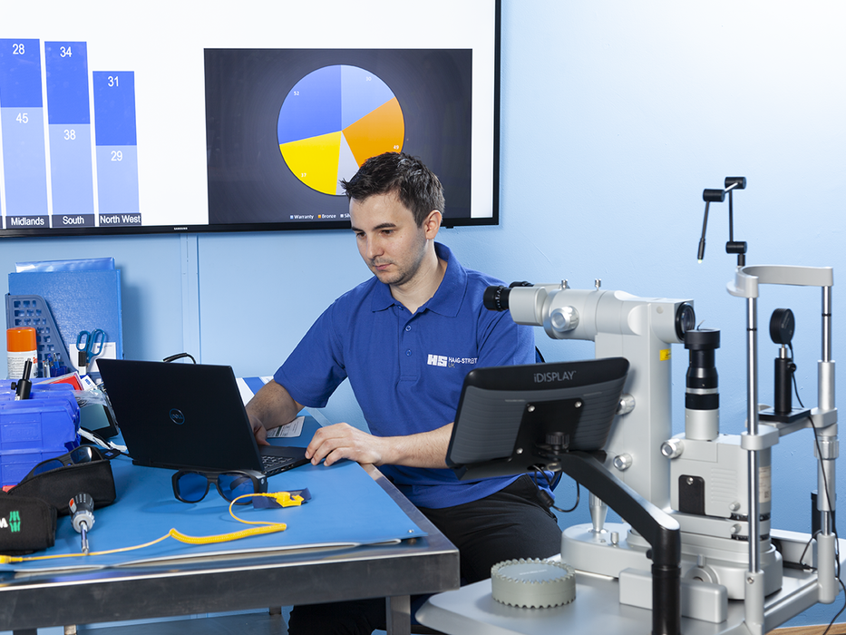 Der Service wird von den Haag-Streit Produktingenieur:innen durchgeführt, die versuchen, die beschädigte Datenbank zu reparieren oder wiederherzustellen. Die Arbeitszeit der Fachkräfte ist im Kundendienst enthalten.
