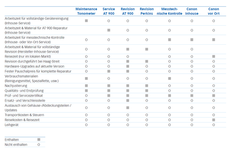 Ein Haag-Streit Tonometer Service Package ist eine umfassende Servicelösung, die dafür sorgt, dass Ihr Gerät stets seine volle Leistung erbringt. Ob vorbeugende Wartung, fachgerechte Reparatur, vollständige Werksrevision oder messtechnische Kontrolle – jedes Paket beinhaltet professionellen Service, präzise Nachjustierung und umfassende Tests. Mit klar definierten Leistungen und Herstellerqualität auf höchstem Niveau reduzieren unsere Pakete Ausfallzeiten und verlängern die Lebensdauer Ihres Geräts – damit Sie sich ganz auf präzise Messergebnisse konzentrieren können.